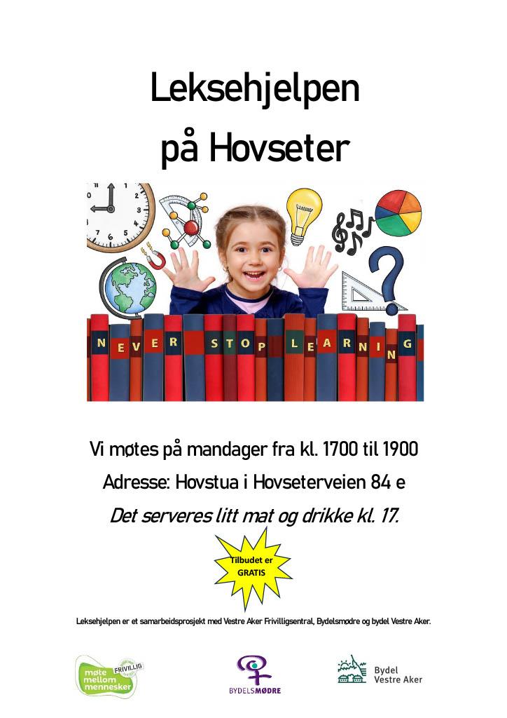 Hyggelig møteplass hvor du kan få hjelp skolearbeid.Leksehjelpen er åpen for elever på barneskolen og voksenopplæringen.