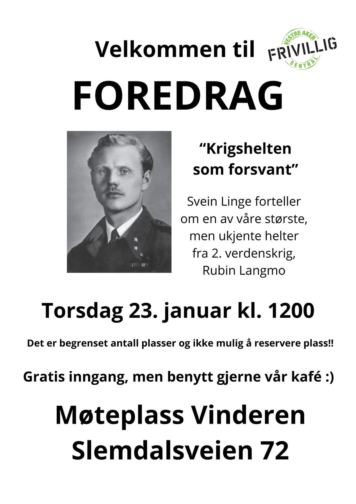Forfatteren Svein Linge kommer til Møteplass Vinderen for å fortelle historien om Rubin Langmo, også kjent under dekknavnet Ruben Larsen.